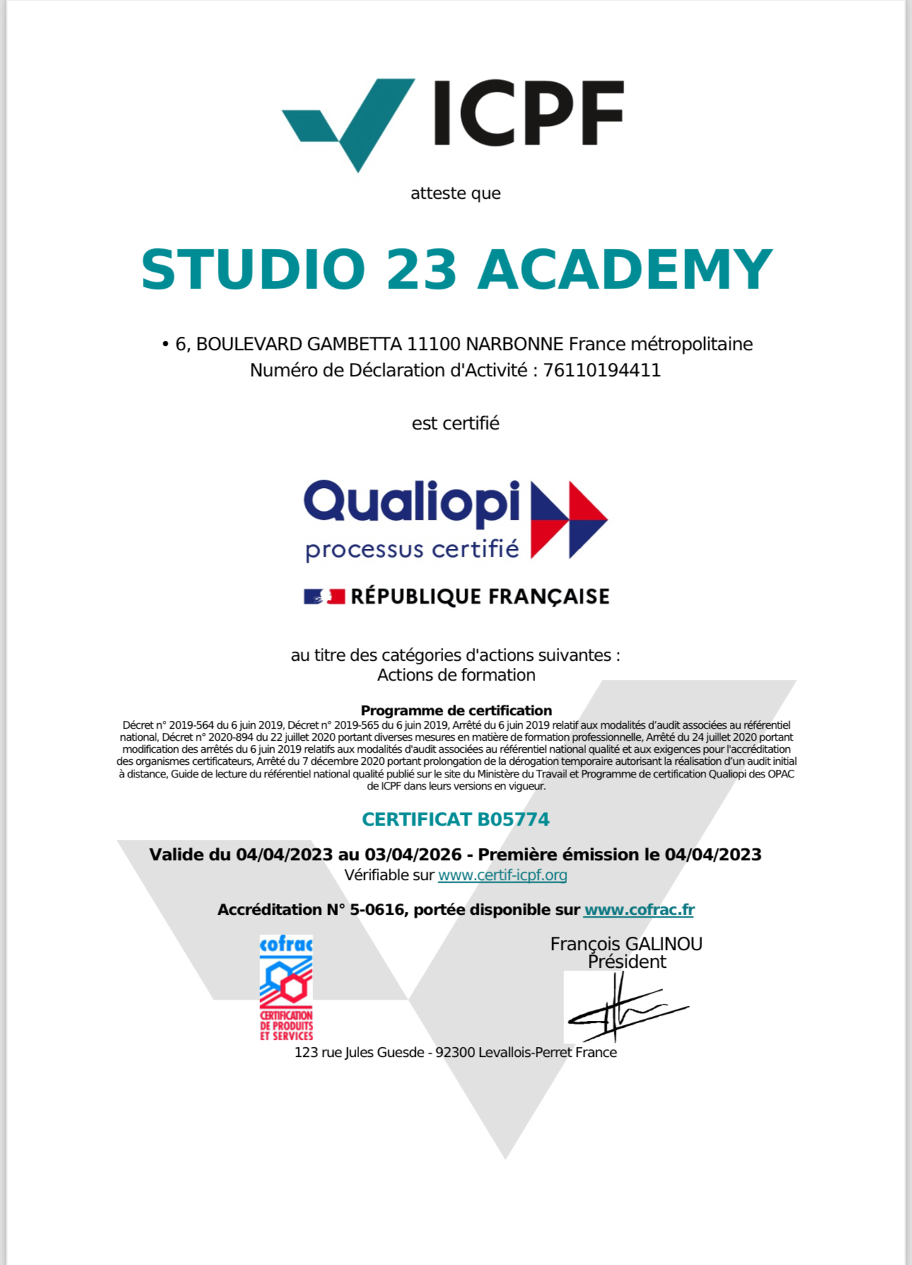 Les formations sont certifiantes, à la fin de votre quizz vous recevrez votre certificat directement sur votre e-mail.